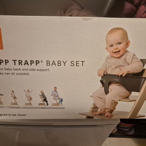 Stokke babysett kjøpt i 2021. Brukt til to barn, men ingen synlige bruksmerker eller slitasje.