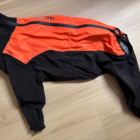 Denne drakten har FEEL Tech-membran på innsiden som beskytter mot regn. Siden dette materialet sitter på innsiden kan drakten se våt ut på utsiden – det betyr likevel ikke at vann lekker inn i plagget.