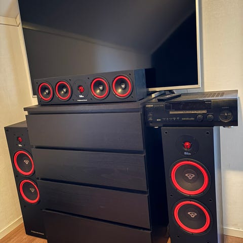 Pga høye følsomheten skal det ikke mye til for og få dem til og spille høyt og kan fint kjøres med en liten stereo forsterker eller ok surround forsterker.