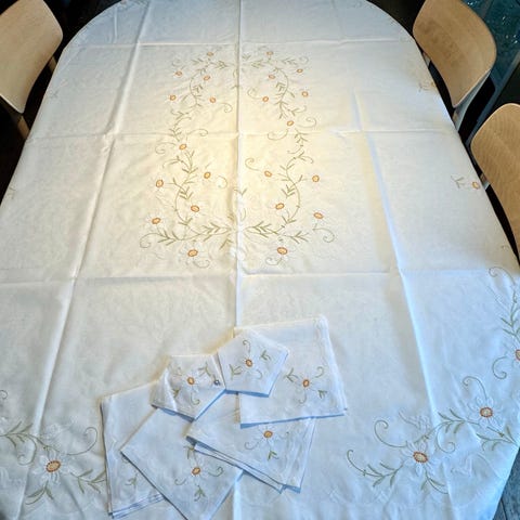 Søt duk med blomsterbroderier