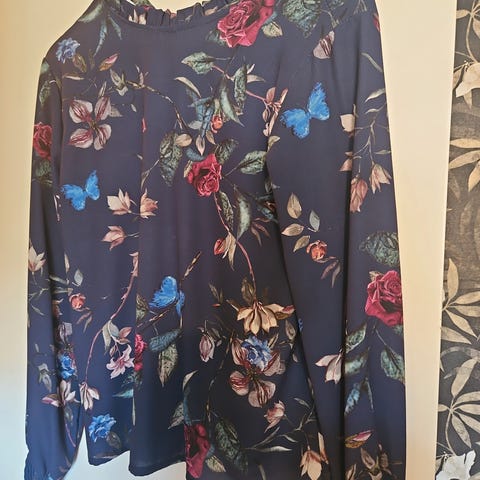 Veldig pen bluse fra Floyd. Stor i størrelsen. En del steder gjennomsiktig.