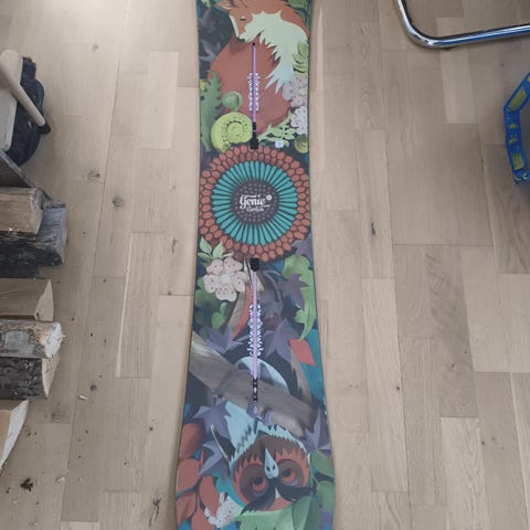 Brettet har kun lette, overfladiske riper, helt normalt for brukt snowboard og ingenting som påvirker kjøringen. Har vært godt tatt vare på.