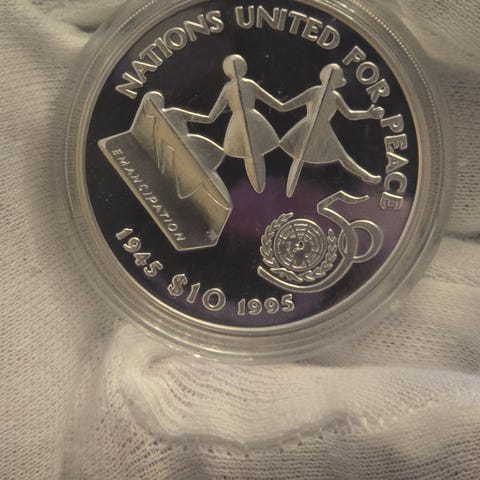 Sølv 0,925 FNs 50-årsjubileum. The Gambia 20 Dalasis 1995 mynt
