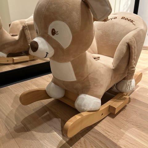Done by Deer lekehest for barn. Myk og polstret med sikkerhetsbelte for trygg bruk.