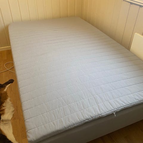 Pute og sengeteppe følger ikke med.