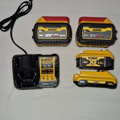 DeWalt XR batteripakke for 18V verktøy. Pakken inneholder tre batterier i gul farge. Batteriene er designet for kompatibilitet med DeWalts XR-serie av trådløse verktøy.