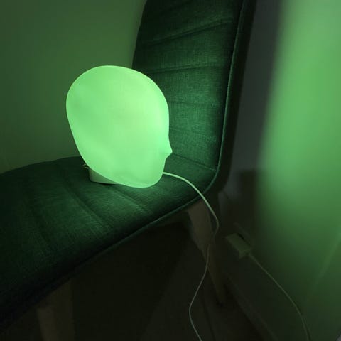 Nesten ubrukt lampe som kan skifte farge og som kan brukes til å oppbevare headset på. Selges på IKEA uten selve støpselet til veggen for 399,- men her får du med støpselet også.