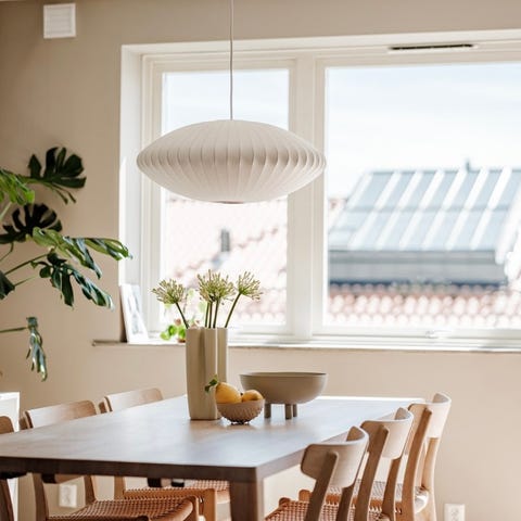 Pent brukt lampe selges pga. oppussing. Nypris 9999,-. En klassiker med behagelig mykt lys. Bruker vanlig E27 lyspære.