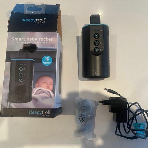 Sleepytroll Baby Rocker med funksjon for å vugge barnevognen automatisk. Produktet er designet for å hjelpe babyer med å sovne ved hjelp av beroligende bevegelser.