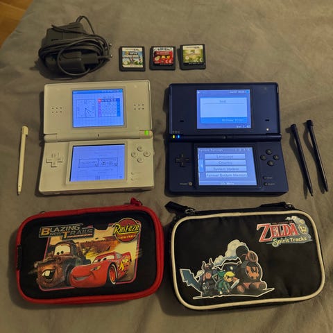 Nintendo DS Lite – god stand, med stylus, USB-lader,etui og spill