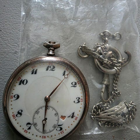 Fint og gammelt lommeur i sølv, tikker og går etter opptrekk