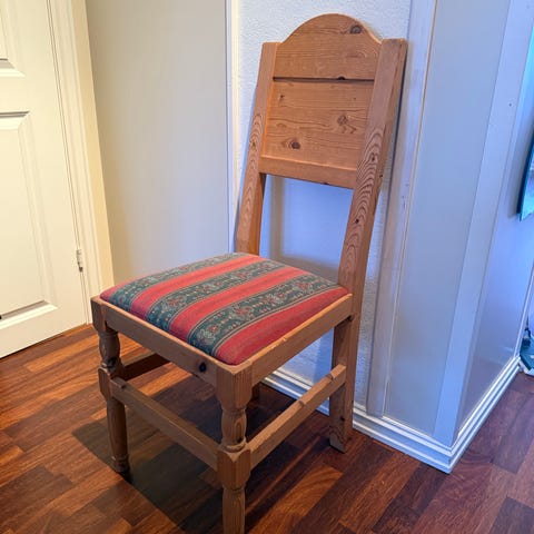 Stolene er pent brukt og har normal slitasje. De har stått på hytte, og er stabile og gode å sitte på.