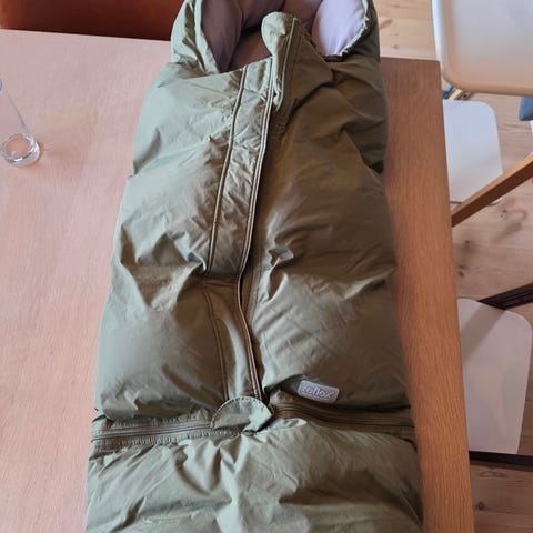 Pent brukt av et barn. God og varm. Svart farge. Følger med forlengerdel. Og oppbevaringspose/nett