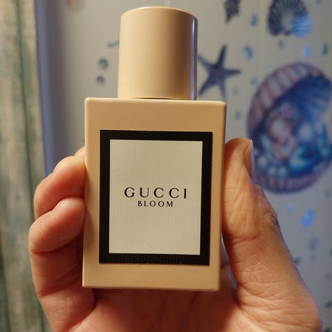 Gucci Bloom Eau de Toilette i rosa flaske. Parfymen har en blomsterduft. Det er brukt ca 1/3 av flasken