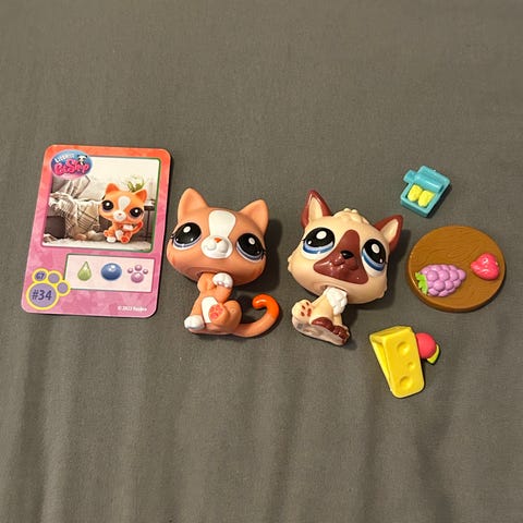 Hasbro Littlest Pet Shop lekefigurer i ulike farger og dyreformer. Settet inkluderer flere små figurer som kan brukes til lek og samling.