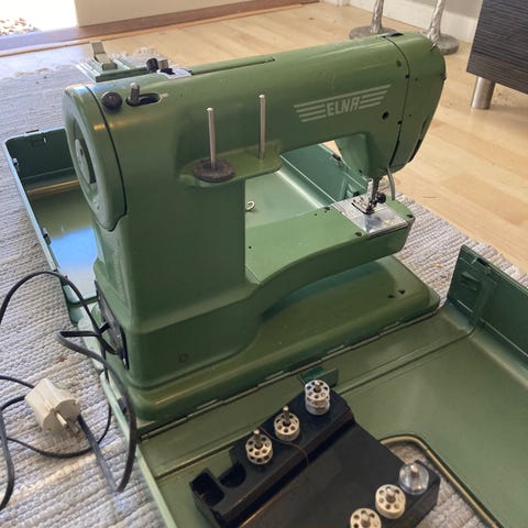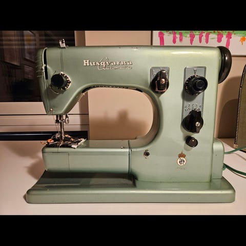 Retro symaskin som er enkel å bruke og syr pen søm den dag i dag. Det er en Husqvarna 2000 modell 6440 i brun og hvit farge. Inkluderer deksel, pedal, flere syføtter, spoler, nåler og annet tilbehør. Maskinen har ulike sømvalg indikert med fargekoder. Solid maskin som har det best når den brukes. Har erfart at når maskinen ikke er brukt på lenge kan reversknappen bli litt treg, men det har ordnet seg etter litt bruk. Pakkes kompakt sammen, og alt utstyr får plass inni dekselet.