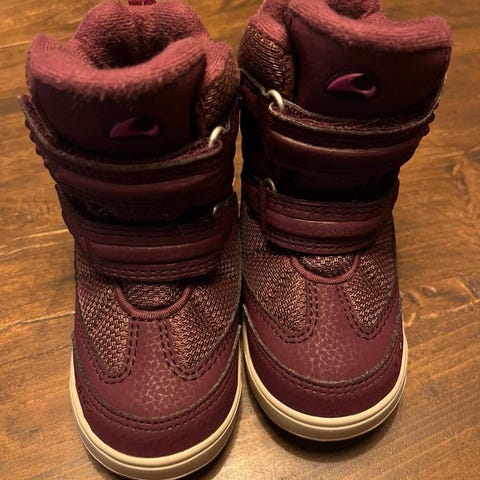 Viking barnesko for jente i størrelse 22. Skoene er røde og har borrelåslukking for enkel tilpasning. Fremstår i god stand og lite brukt.