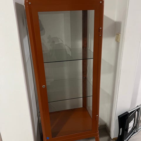 Glass skap. Følger med glass hyller. Følger med trehyller til det treskapet. 200 kr pr stykk. Selges hver for seg også.