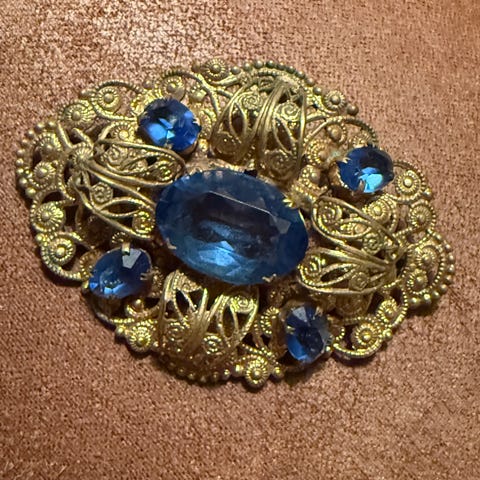 Nydelig vintage skrin / boks med lokk i dekorert metall med stener.