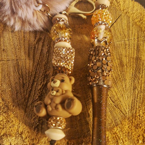 Håndlagde nøkkelringer og veskepynt, laget av meg.