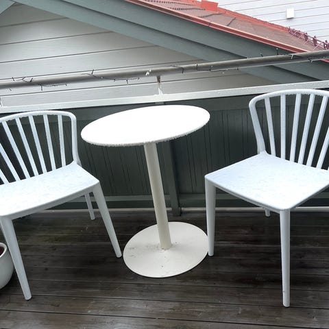 Selger et pent brukt utemøbelsett som passer perfekt til balkong eller terrasse.