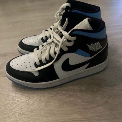 Air Jordan Sneakers joggesko i størrelse 41. Skoene har en helsvart farge og er designet for generell bruk som sneakers. Er i god form. Er litt skade i helen inne i skoen. Ellers bra. Har kvittering på de. Kan sendes.