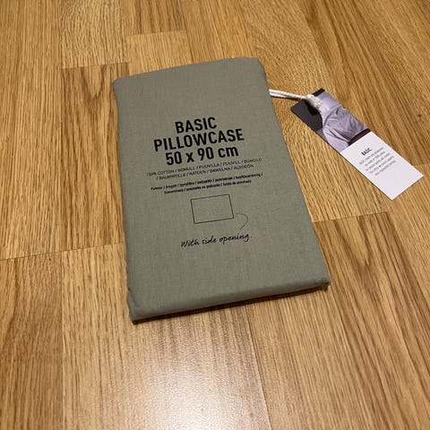 H&M Home Basic putetrekk i størrelse 50 x 90 cm. Laget av 100 % bomull. Farge hvit.