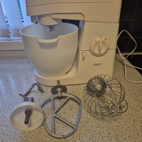 Kenwood kjøkkenmaskin med rustfri stålbolle og flere tilbehør