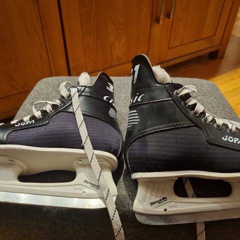 Jofa Ishockey skøyter for barn i størrelse 31. Skøytene er svarte og designet for ishockey. Passer til barn som trenger skøyter til ishockeyspill.