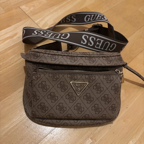 GUESS Dame veske laget i svart kunstlær. Vesken har et quiltet mønster med detaljer i metall og flere lommer innvendig for organisering. Designet for damebruk.