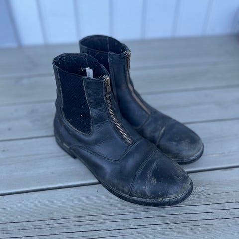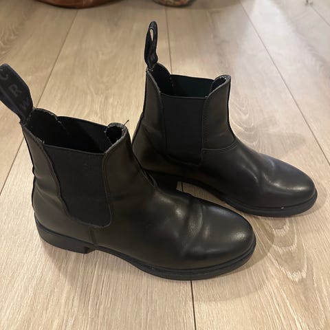 brune ridesko, passe til godt brukt.
