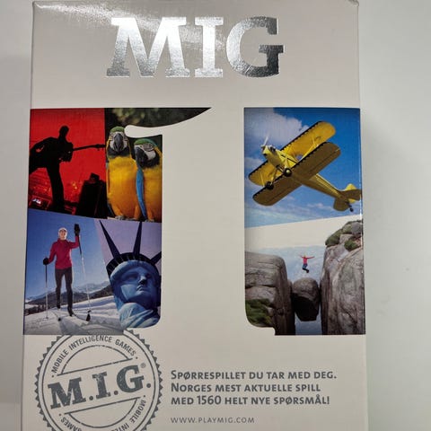 M.I.G. brettspill med totalt 1560 spørsmål fordelt på kategoriene For år, Kultur & Underholdning, Nær & Fjern, Sport & Blandet, Natur & Teknikk. Uåpnet, plasten er enda på.