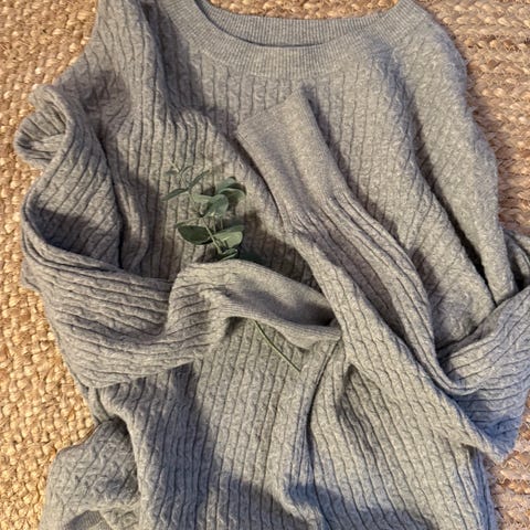 Genser fra Cubus i ull for dame i størrelse L. Genseren har flerfarget mønster med hovedfarge blå og detaljer i rødt og hvitt. Materialet er ull, og genseren har rund hals.