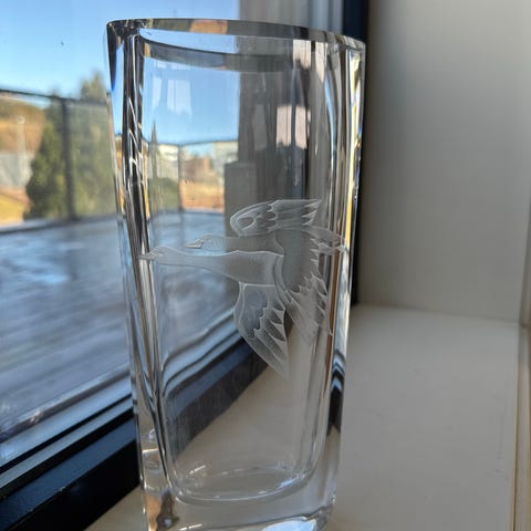 Selger denne tunge flotte krystall vasen produsert av Magnor glassverk