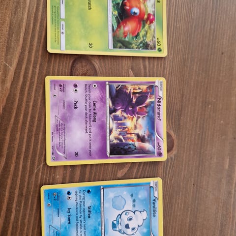 Pokémon samlekort med variert utvalg av forskjellige kort fra Pokémon-spillet. Kortene har ulike motiver og egenskaper som brukes i samling og spill.