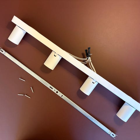 Stilren takspotlight i lakkert stål. Fire dreibare lampehus - vend lyset dit du selv ønsker.
