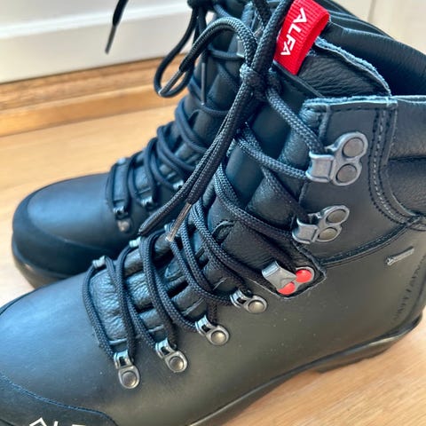 Str 38. Fjellskisko fra Alfa som er helt ubetydelig brukt. Brukt på 5 turer, så et par skjønnshetsmerker, men ellers så godt som nye. Ny pris på Fjellsport 4 799kr.