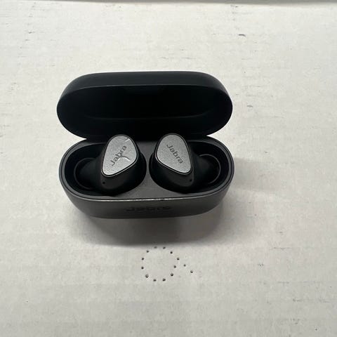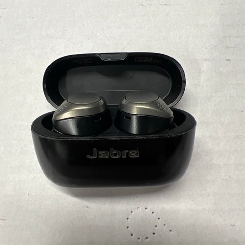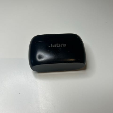Jabra trådløse ørepropper i svart farge. Produktet inkluderer etuiet for lading og oppbevaring. Designet for trådløs bruk.