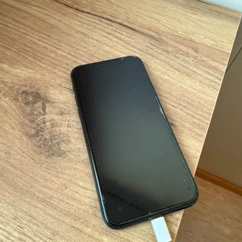 Brukt Apple iPhone 11 Pro mobiltelefon med 64 GB lagringskapasitet. 72% batterikapasitet, frontskjermen er knust. Ledning for lading følger med. Fungerer som den skal, selges høystbydende 1500kr.