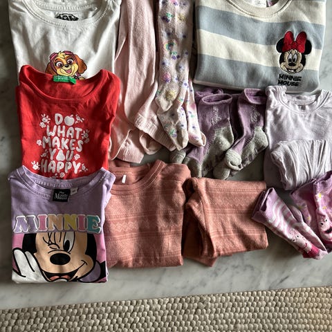 Selger en stor pakke med 69deler til liten jente i størrelse 98/104 fra ulike merker som Zara, HM og Polarn o Pyret.
