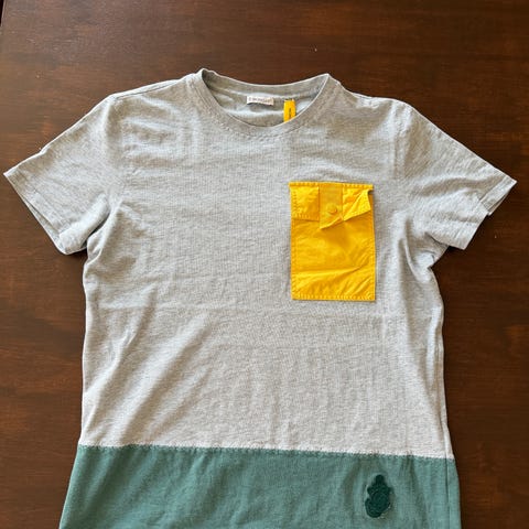 Nesten helt ny moncler T-skjorte, bare prøvd på. Kjøpte den for 1 år siden på follestad til 3k. Selger da den ikke passer.