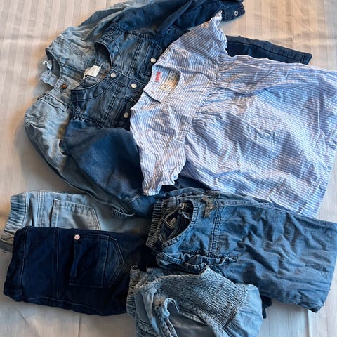 Bergans barneklær i størrelse 56 for unisex. Inkluderer flere plagg i blå og grønne toner med strikkede materialer. Passer for små barn og gir varme og komfort.