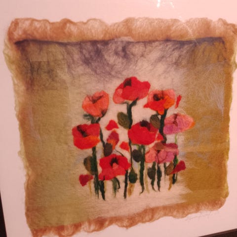 Håndlaget med rikt broderi på et naturlig vevd stoff, er dette verket både dekorativt og kunstnerisk – perfekt som et iøynefallende veggteppe i en stue, gang, studio eller kreativt rom.
