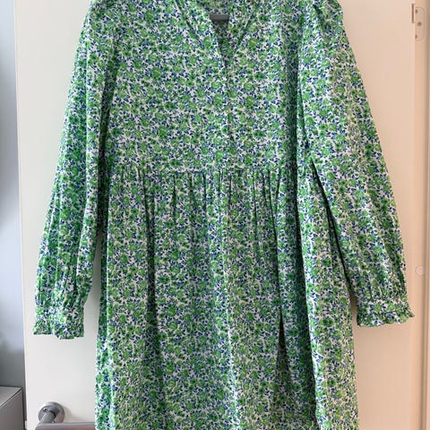 Blå flerfarget kjole fra vila. Størrelse 38. Knyting i livet