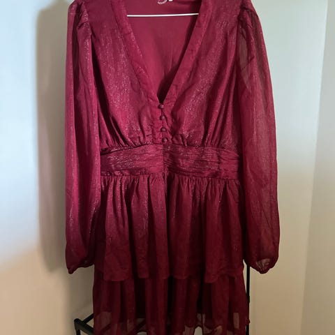 Mørk rød kjole med glitter