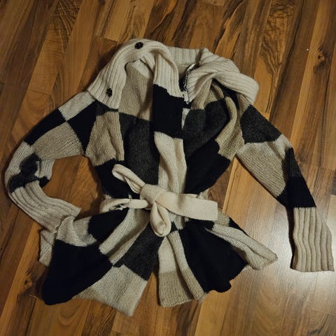 B. Young lang genser str m med lomme og hette til salgs. Blå og grå. Hettegenser