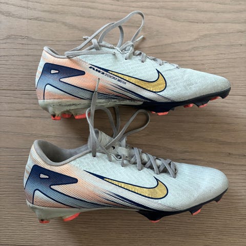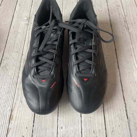 Adidas fotballsko i rød og hvit farge, størrelse 41 Skoene har snøring og er designet for bruk på fotballbanen. Brukt en gang