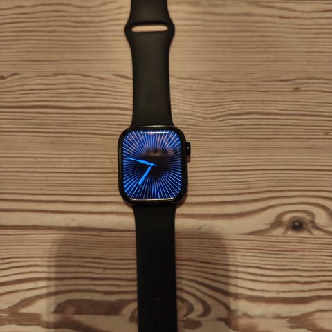 Selger NY og UÅPNET Apple Watch Series 11 GPS 42 mm gagatsvart aluminum, svart sport band (S/M) for 4300,-