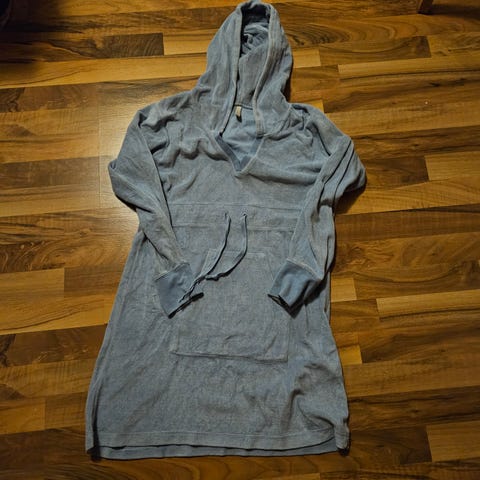 Young lang genser str m med lomme og hette til salgs. Brune beige hvit. Hettegenser