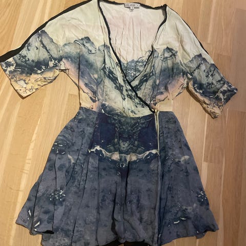 Flott smash cardigan til salgs. Står xl men er mer som en L. Gra genser med knapper . jakke med flott blomstermønster og hette. Minner om Desigual.